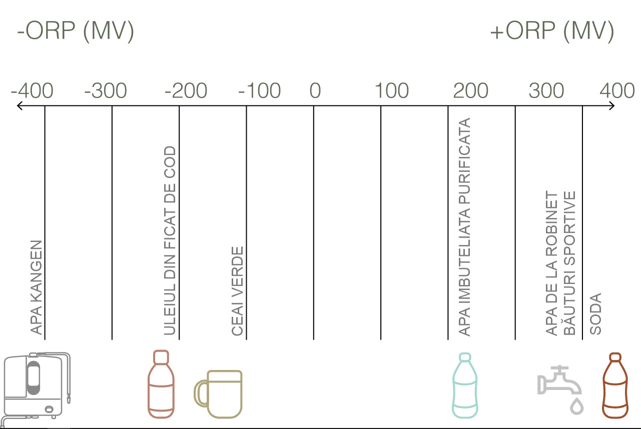 Un ORP negativ (-) înseamnă antioxidant, iar un ORP